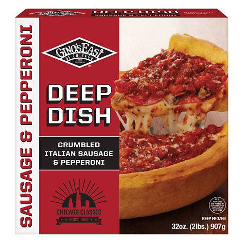 Gino's East Deep Dish Pepperoni and Sausage Pizza brings the authentic taste of Chicago-style pizza to your table. Loaded with crumbled Italian sausage, pepperoni and a rich tomato sauce, it's ideal for family dinners or casual gatherings. Just bake and serve for a hearty, satisfying meal. Gino's East Deep Dish Pizza is a must-have for pizza lovers seeking a genuine deep-dish experience.