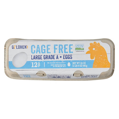 Make a protein-packed breakfast you'll love with these Goldhen Cage Free Large White Eggs Grade A. Each egg comes from a cage free chicken and is free of added growth hormones. Use yours for poached eggs, a loaded egg scramble, or a fluffy omelette.