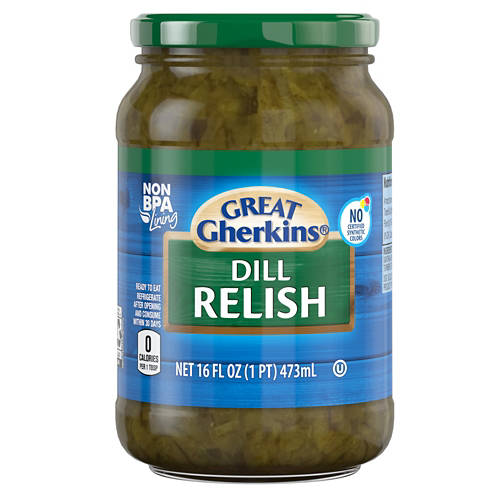 Great Gherkins Dill Relish brings a tangy burst of flavor to your meals. It's perfect for topping hot dogs or mixing into potato salad. This relish is a must-have for adding zest to your everyday dishes. Enjoy the bold taste of Great Gherkins Dill Relish in every bite.