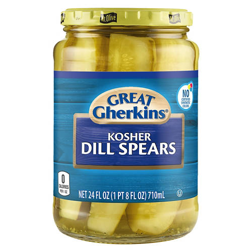Great Gherkins Kosher Dill Pickle Spears are the crunchy addition your meals have been missing. Fresh-packed for that extra bite, these dill spears are ideal for sandwiches, burgers or straight from the jar. With only 5 calories per serving, indulge guilt-free. Add that tangy dill flavor to your favorite dishes and enjoy every crunchy bite.