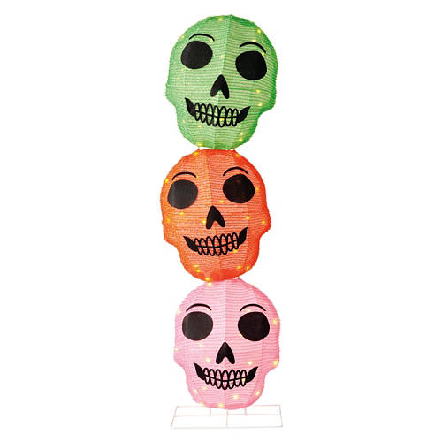 Dimensions: Skull - 9.84" L x 7.09" W x 35.83" H; 6 hour on/18 hour off timer function with 45 LED Lights Can be used in a covered indoor or outdoor space Requires 3 x AA batteries, not included