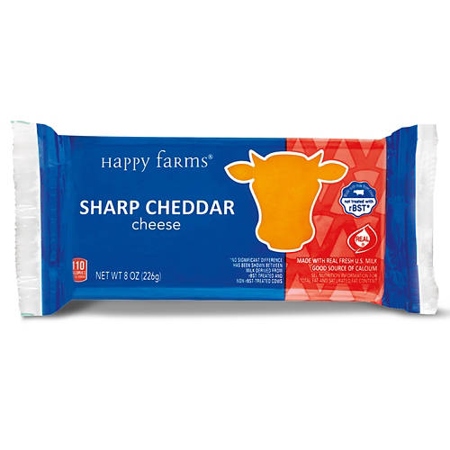 Happy Farms Sharp Cheddar Cheese is bold in flavor and taste. Pick up an 8 ounce block of this sharp cheddar cheese and use it in a variety of dishes. From ham and cheese sandwiches to macaroni and cheese, cheese puffs, casserole, and grilled cheese sandwiches, we're sure you'll find a use for this tasty cheese. You can even slice this cheddar cheese and enjoy it on its own or with crackers.
