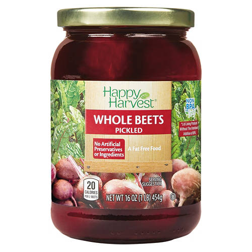 Top a fresh salad with these tasty Happy Harvest Picked Beets. The sliced beets have been pickled without artificial ingredients and preservatives to let their natural flavor shine. Use them to finish off a savory avocado toast or loaded veggie sandwich.
