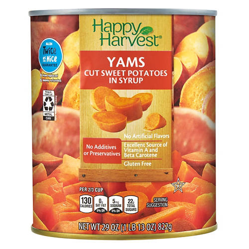 Sweeten up your favorite dishes with these Happy Harvest Yams. The cut sweet potatoes are packed with Vitamin A and Beta Carotene and are free of artificial flavors and preservatives. Use yours to make a delicious casserole the whole family will love!