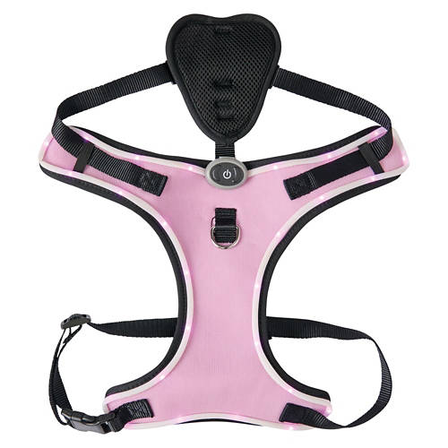 Designed for low light use. Three light modes - solid, flashing, fast-flashing. USB rechargeable. Slip-on harness design. Adjustable straps for a comfortable fit.