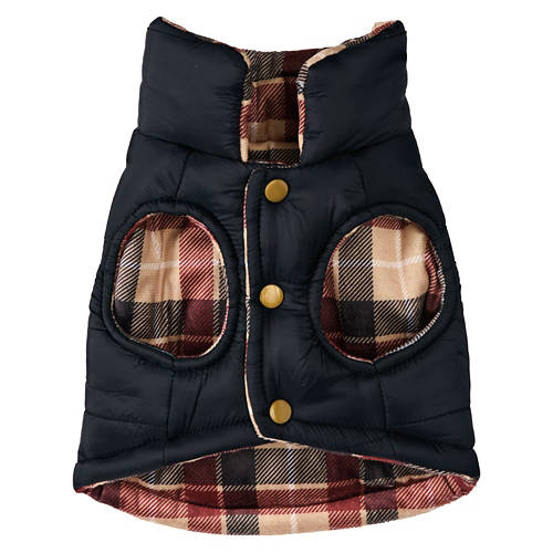 Pet Reversible Luxury Puffer Coat - Black Check, XS