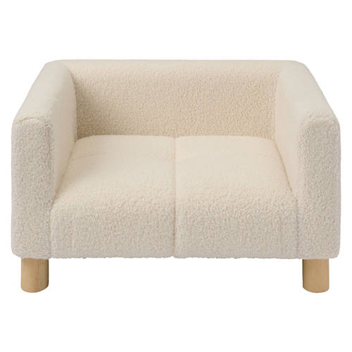 Dimensions for rectangle chair are 21.65" x 15.74" x 11.22". Luxurious cream-color boucle fabric. Assembly hardware included.