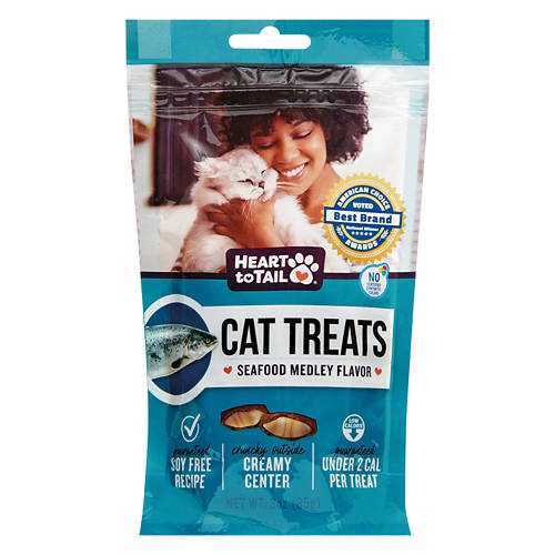 Your cat will love these Heart to Tail Seafood Medley Cat Treats! Each treat is wheat free and soy free and has a crunchy outer shell and creamy center to prevent tartar. Toss your kitty a handful each afternoon to promote better oral health!