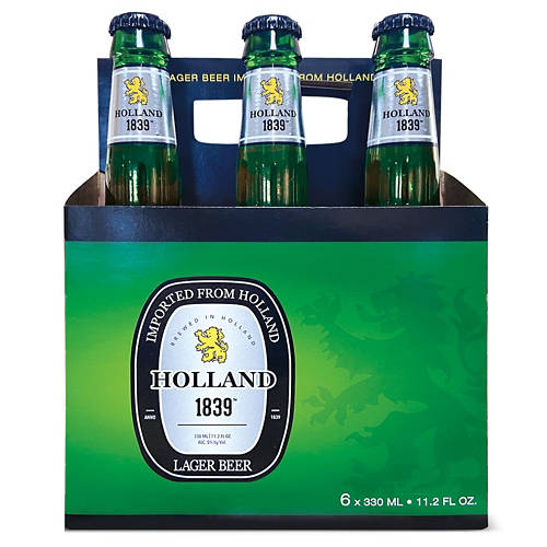 Know what pairs well with BBQ, pizza, chicken, and fried foods? Holland 1839 Lager beer. Imported from Holland, this delicious beer has flavors of sweet and toasted malt and Noble hops. Each pack comes with six 11.2 fl. oz. bottles of pale lager beer that's the perfect amount to share with friends and family. Each bottle also has a 5% alcohol by volume content.