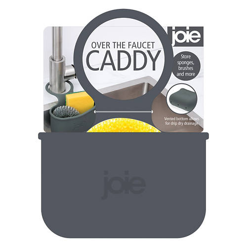 Over the Faucet Caddy Stores sponges, brushes, and more Vented bottom allows for drip dry drainage