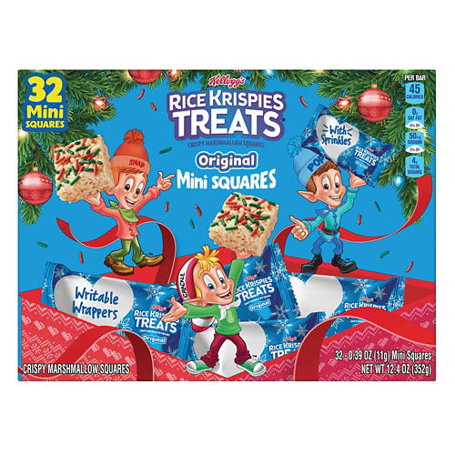 Kellogg's Christmas Rice Krispies Treats are the festive delight you need this holiday season. These crispy marshmallow squares are perfect for holiday gatherings, lunchboxes or a quick sweet pick-me-up. Indulge in the cheerful packaging and enjoy the classic taste that brings joy to any occasion. Treat yourself to the magic of Kellogg's Christmas Rice Krispies Treats.