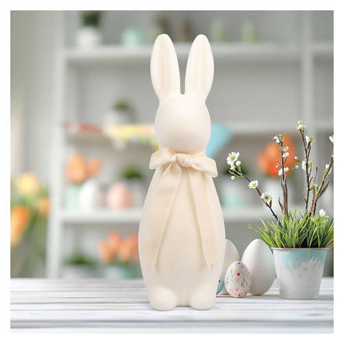 16' Tall Flocked Bunny, Ivory