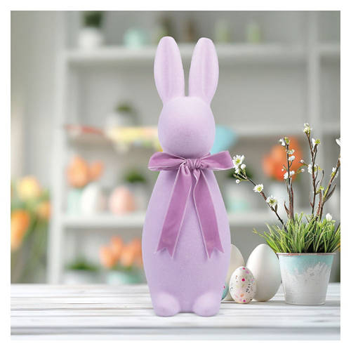 Add some bright colors to your Easter decorations w/ our adorable flocked bunny. Perfect for a tabletop, mantle or tray decor. Available in 4 colors. 16" Tall For indoor use only