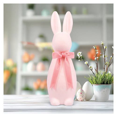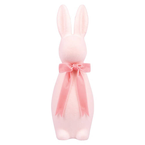 Add some bright colors to your Easter decorations w/ our adorable flocked bunny. Perfect for a tabletop, mantle or tray decor. Available in 4 colors. 16" Tall For indoor use only