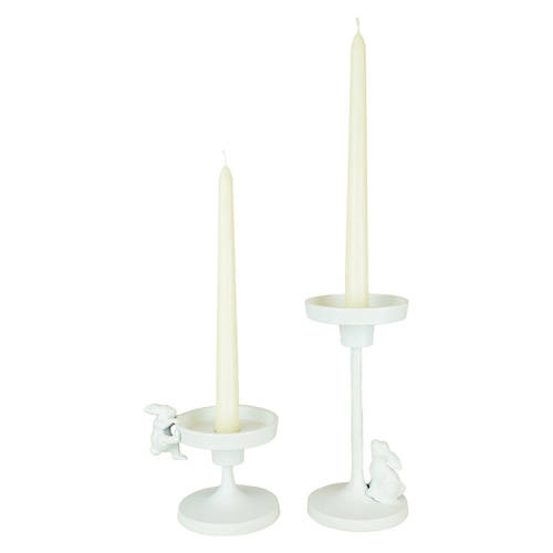 Hop into spring with our playful Rabbit Candle Holders. Set of 2 metal candle holders can be used with pillar or taper candles. Dimensions: Large 3.54 x 3.54 x 7.55" H Small: 4.68 x 3.54 x 4" H