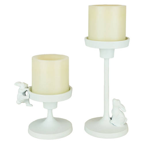 2 Pack Bunny Metal Candle Holders, White