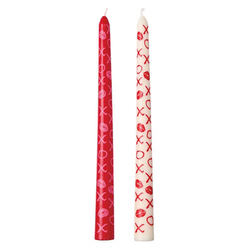 2 Pack Valentine's Day Taper Unscented Candle - 3D XOXO