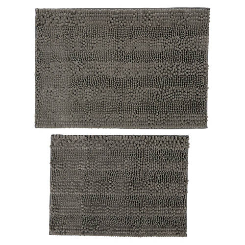 2 Piece Chenille Bath Rug Set, Gray Solid