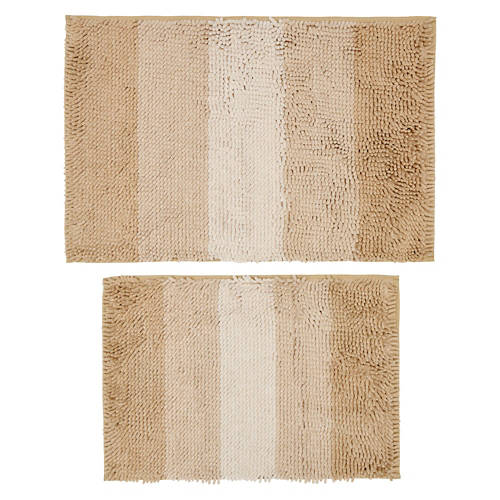 2 Piece Chenille Bath Rug Set, Tan Ombre