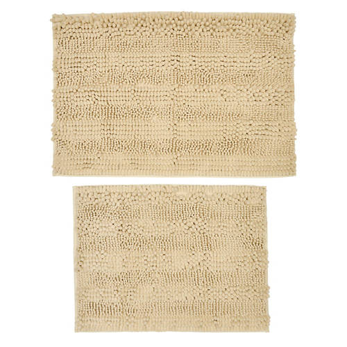 2 Piece Chenille Bath Rug Set, Tan Solid