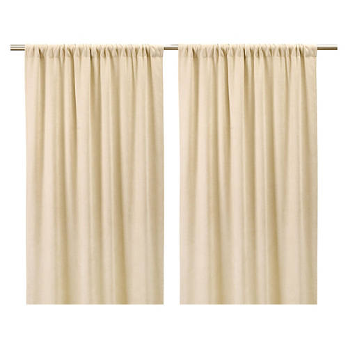 2PK Beige Velvet Room Darkening Curtains