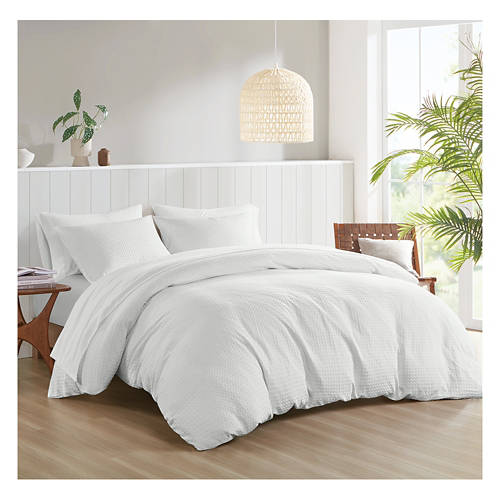 3 Piece Queen Size Duvet Cover Set - White Waffle