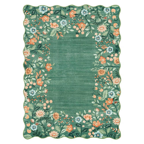 But full of possibilities3' x 4' Washable Scalloped Accent Rug - Green Floral