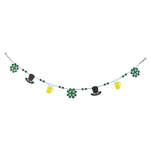 Fun St. Patrick's Day Garland perfect to add a bit of cheer to your St. Patrick's Day Decor. Each garland is 6.13 ft. long and includes loops at each end for easy hanging.