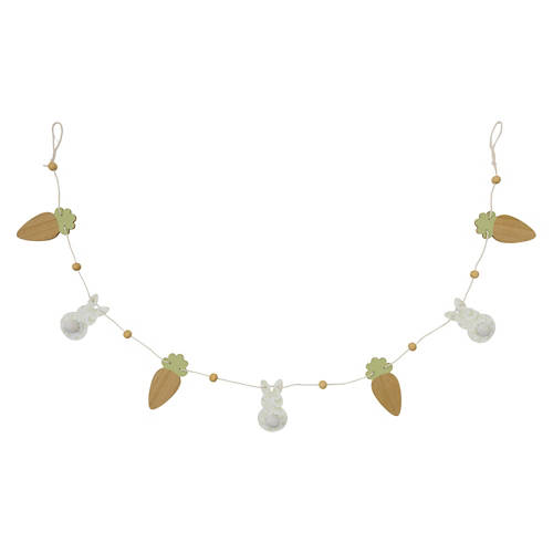 But full of possibilities6.13' Long Easter Garland - Bunnies with Toile Print & Carrots