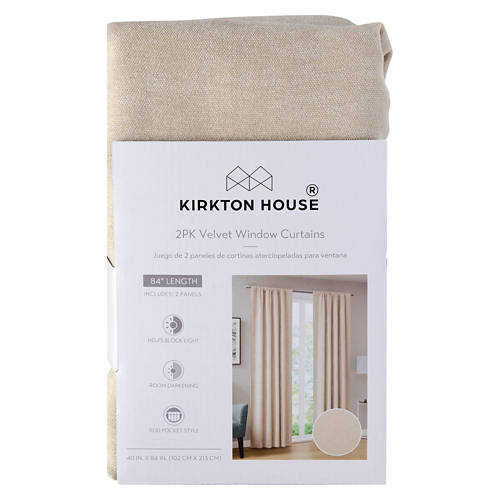 84" Velvet Room Darkening Curtains - Beige, 2 Pack