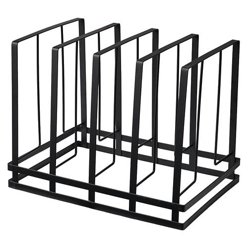Sturdy metal frame Bakeware Sorter: - Safely stores, organizes and protects bakeware and cutting boards. - Dimensions: 13 in W x 8.97 in D x 10.11 in H
