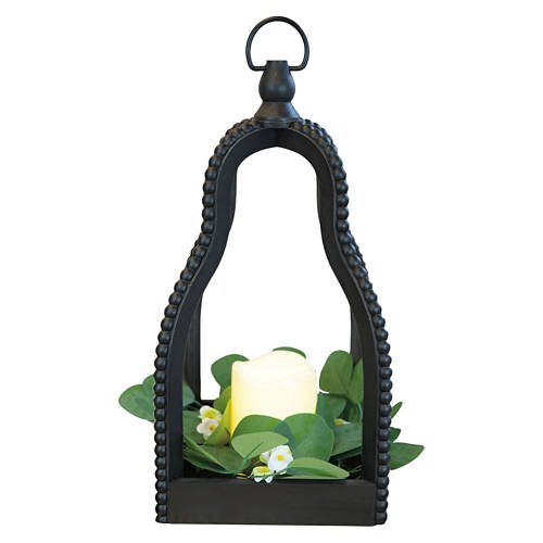 Beaded Lantern with LED Candle - Black, Curved