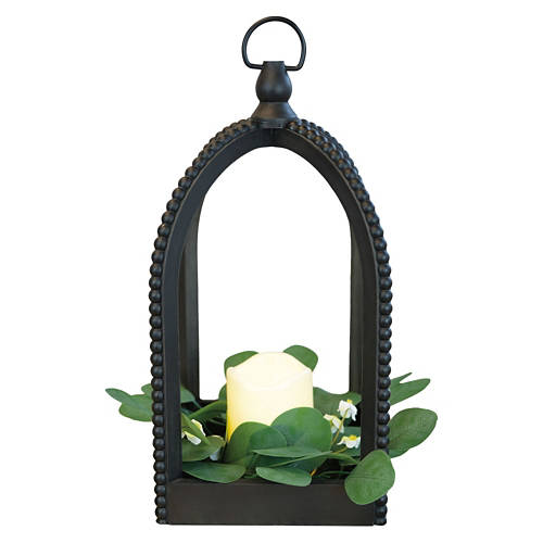 Beaded Lantern with LED Candle - Black, Rounded