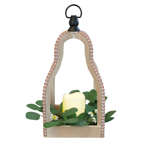 Beaded Lantern with LED Candle - Brown, Curved