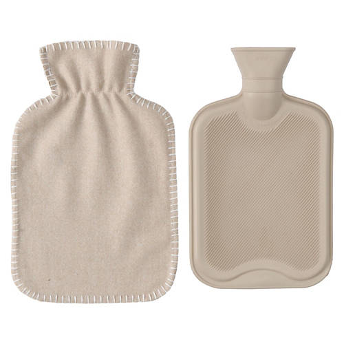 Faux Fur/Sherpa Covers: 100% Polyester Knit Covers: 100% Acrylic Bottle Cover: Natural Rubber Capacity: 1.7 L Bag: 7.6in x 12.6in Hot or Cold Compress Relieves Muscle Soreness Cover is Machine Washable Oeko-Tex Certified