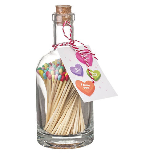 Matches Holder - Hearts, Natural Matches with Multi-Color Tips