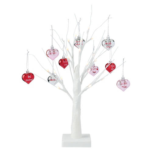 Valentine's Day White Glitter Tree with Red/Pink Conversation Hearts