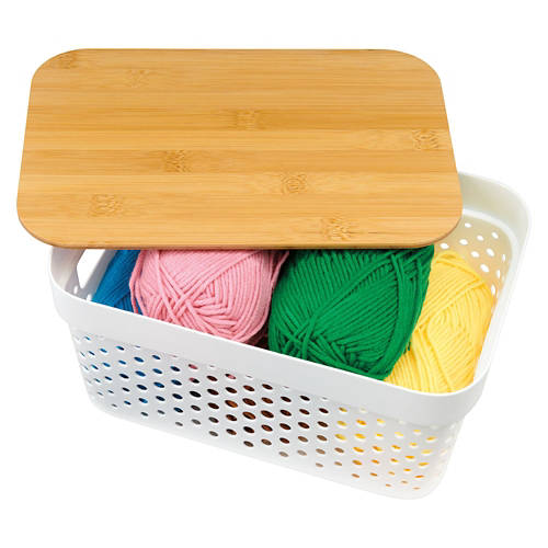 But full of possibilitiesWhite Basket with Bamboo Lid