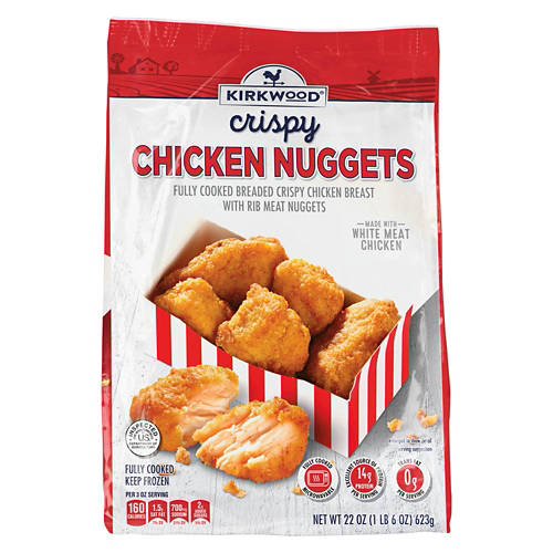 Kirkwood Crispy Chicken Nuggets are made with white meat chicken breast and rib meat. These fully cooked, breaded nuggets are perfect for a quick meal or snack. Heat them up in the oven or microwave and pair with your favorite dipping sauce. Ideal for busy weeknights or a fun family dinner. Keep a bag in the freezer for a tasty, protein-packed option anytime.