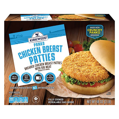 Kirkwood Panko Chicken Breast Patties are made with white meat chicken and crunchy panko breading. Each patty is fully cooked and microwaveable, offering a quick meal solution. With 12g of protein per serving, they are ideal for sandwiches, salads or a main dish. Enjoy the convenience of a resealable bag to keep patties fresh. Kirkwood Panko Chicken Breast Patties are a tasty and practical choice for any meal.