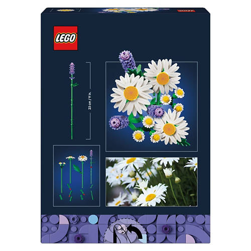 Daisies A sweet mix of fresh daisies, calming lavender and a tiny lucky ladybug. This petite arrangement blends cheerful blooms with soothing details, creating a perfect balance of aesthetic and tranquility to a tweens desk or shelf. It is a highly detailed and realistic LEGO interpretation of a sweet bouquet
