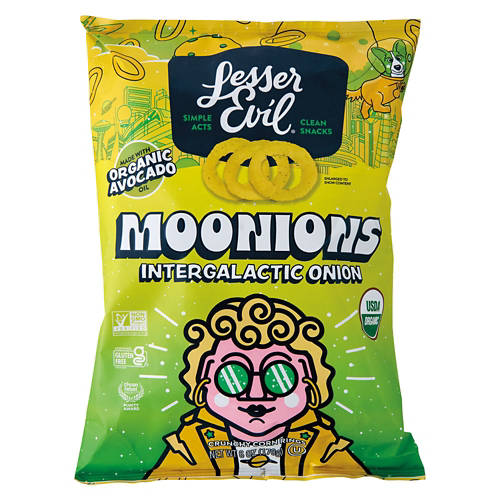 LesserEvil Moonions Onion Rings are made with organic avocado oil for a unique flavor twist. Ideal for on-the-go snacking or adding a fun element to your meal, these onion rings deliver an intergalactic taste experience. Enjoy the bold, satisfying crunch of LesserEvil Moonions Onion Rings for a delightful treat anytime.