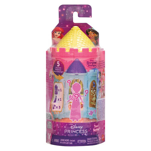 Disney® Princess Small Doll Tower Stacker Reveal Ast - Create your Disney Storytime Stackers world with Tower Surprise Princess stacking playsets! Open the tower playset to discover an adorable Princess small doll inside, inspired by animated characters in Disney movies. Find four more surprises, including a removable skirt, a cute character friend and themed accessories. Connect the world by attaching towers to other Storytime Stackers playsets (not included) for the ultimate stackable kingdom! Each sold separately, subject to availability. Dolls cannot stand alone. Colors and decorations may vary. Age Grade: 3Y+