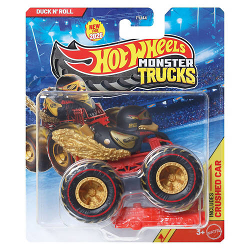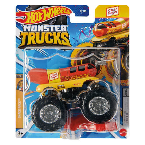Print Hot Wheels® Monster Trucks 1:64 Monster Asst - The Hot Wheels® Monster Trucks 1:64 scale die-cast vehicles are primed for epic smashing and crashing. Each metal toy truck has awesome designs and giant tires and includes a crushable car. The packaging has the truck's name, truck type, strength, unique crash attack and motor-vation. With a wide variety of characters available, collectors and kids 3 years old and up will want to get them all. Each sold separately, subject to availability. Colors and decorations may vary. Age Grade: 3Y