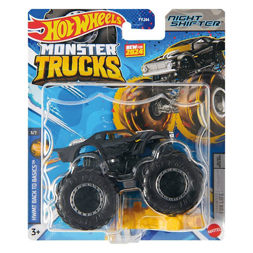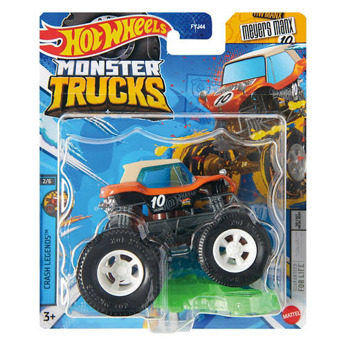 Print Hot Wheels® Monster Trucks 1:64 Monster Asst - The Hot Wheels® Monster Trucks 1:64 scale die-cast vehicles are primed for epic smashing and crashing. Each metal toy truck has awesome designs and giant tires and includes a crushable car. The packaging has the truck's name, truck type, strength, unique crash attack and motor-vation. With a wide variety of characters available, collectors and kids 3 years old and up will want to get them all. Each sold separately, subject to availability. Colors and decorations may vary. Age Grade: 3Y