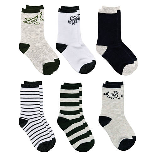 6 Pack Children's Crew Socks - Dino, L