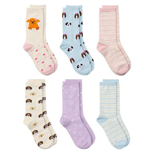 6 Pack Toddler Crew Socks - Dog Stripes, 2T/3T