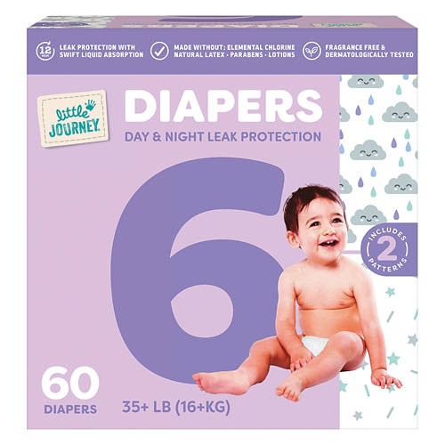 Little Journey Club Pack Diapers are designed to keep your baby dry and comfortable. With a 4-layer system that locks in wetness and a hypoallergenic liner, these diapers provide up to 12 hours of protection. Ideal for babies over 35 lbs, they ensure your little one stays content whether at play or asleep. Choose Little Journey for reliable, all-day dryness and comfort.