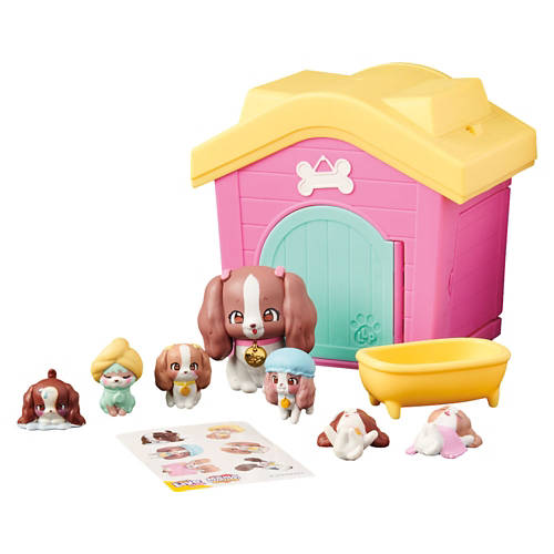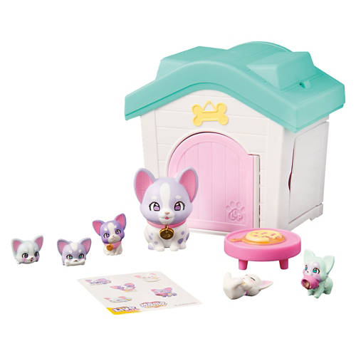 Mama magically has 4-6 mini collectible babies and mama pup. Fold-out playset with mama's house. Over 80 to collect.