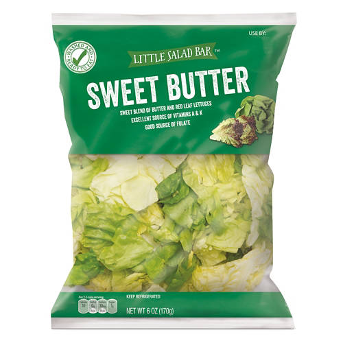 Fresh, crisp, and ready to eat! This Little Salad Bar Sweet Butter Salad is a perfect blend of butter and red leaf lettuces. Ideal for a quick side salad, a base for your favorite toppings, or in a wrap for a healthy meal. Keep refrigerated and enjoy the excellent source of vitamins A and K, along with a good source of folate.